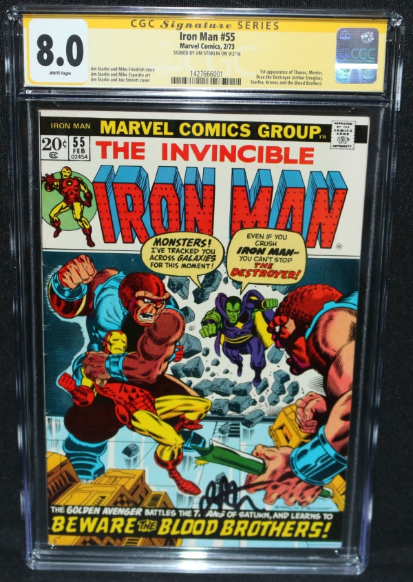 IRON MAN 1973 55 CGC 9 0 1ST THANOS SIGNED SKETCHED BY SINNOTT STARLIN
