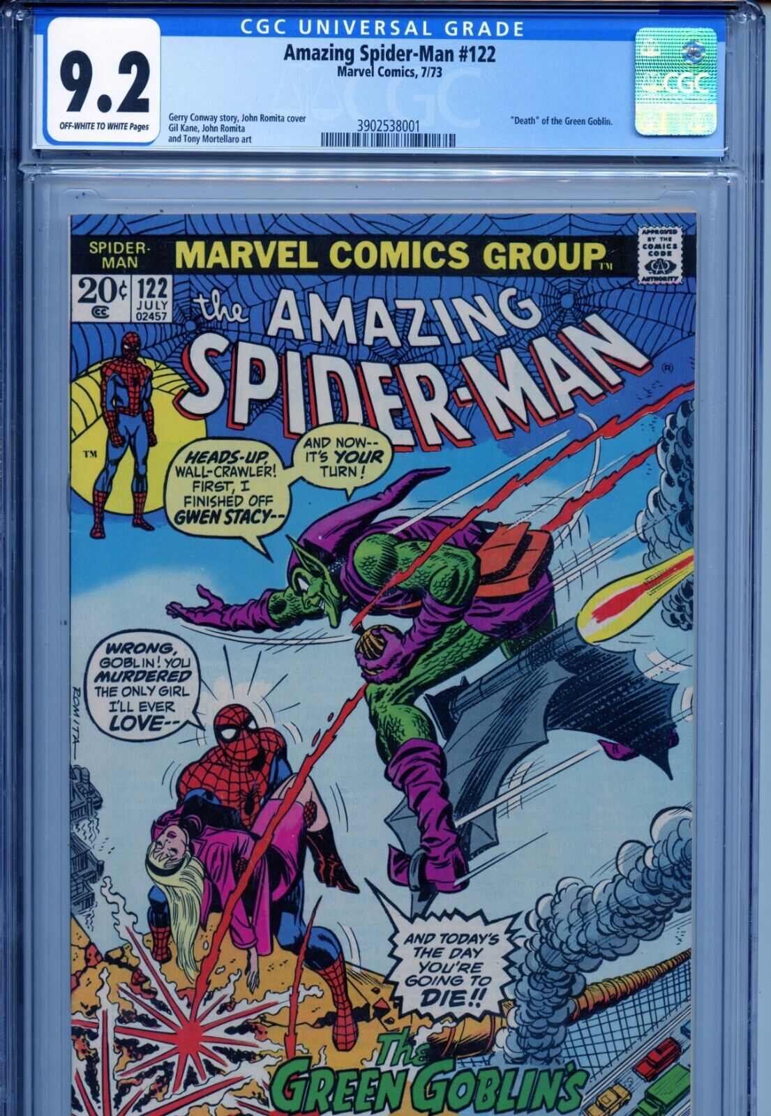 AMAZING SPIDER MAN 122 CGC 9 6 1973 DEATH OF THE GREEN GOBLIN WHITE PGS